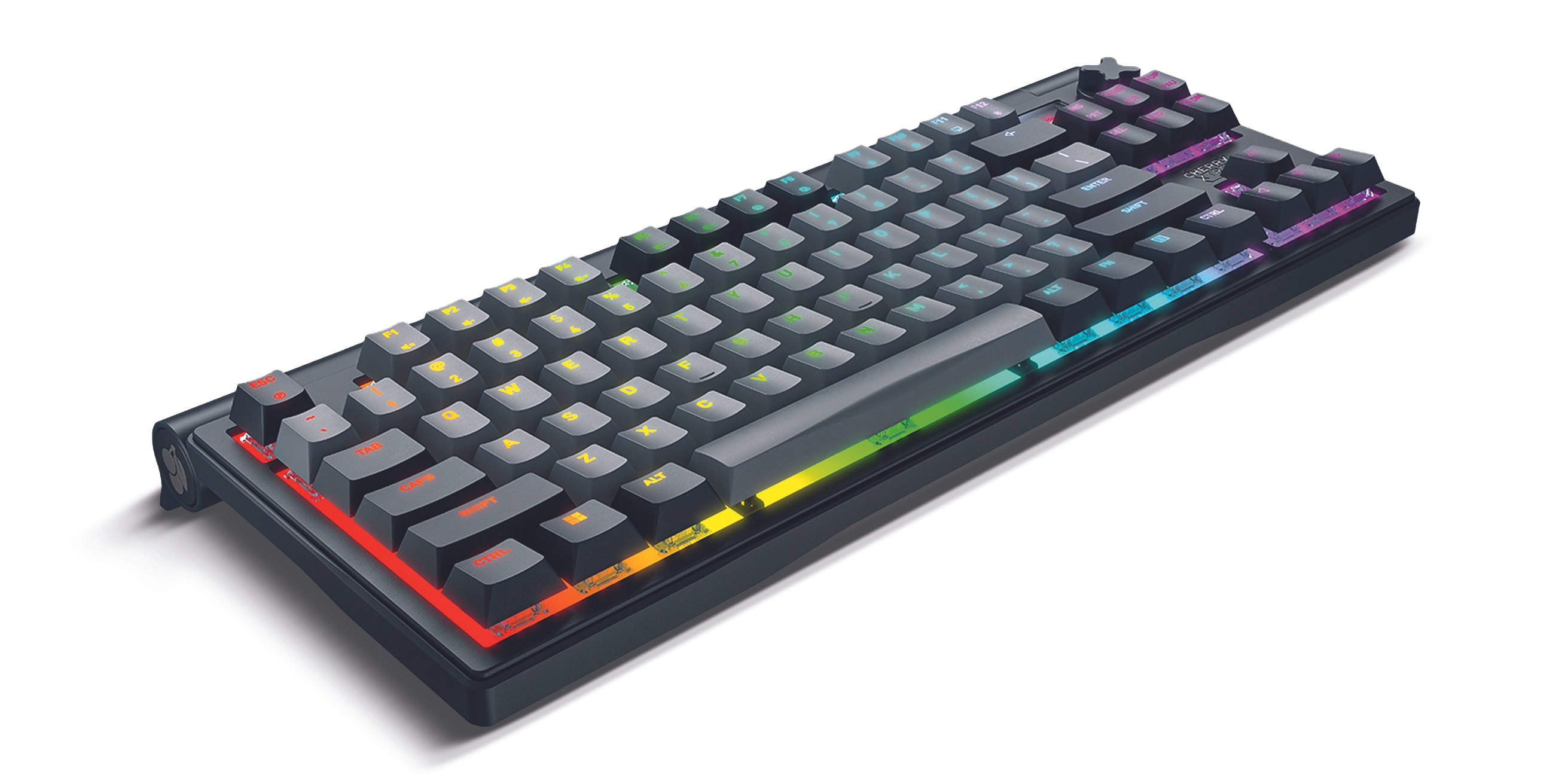 The ultra-fast triple-mode connection, hot-swappable CHERRY MX2A switches and the abrasion-resistant PBT key caps offer absolute flexibility and durability. The mechanical gaming keyboard also features an LCD display and a practical rotary knob – for ultimate control. It’s engineered for maximum speed.